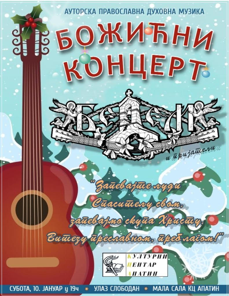Pozivamo vas da u subotu, 10. januara, prisustvujete jednom nesvakidašnjem muzičkom sabranju, u Maloj sali Kulturnog centra Apatin, od 19.00 časova, uz nastup pravoslavnog muzičkog sastava „Bedem” iz Sombora.