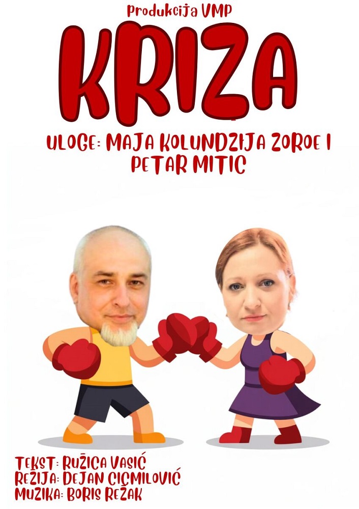Predstava „Kriza“ je priča o bračnom paru koji se bori sa krizom srednjih godina, sa finansijskom krizom i naravno, sa krizom u braku. Uprkos svemu, oni se i dalje vole, ali, da li je ljubav dovoljna?